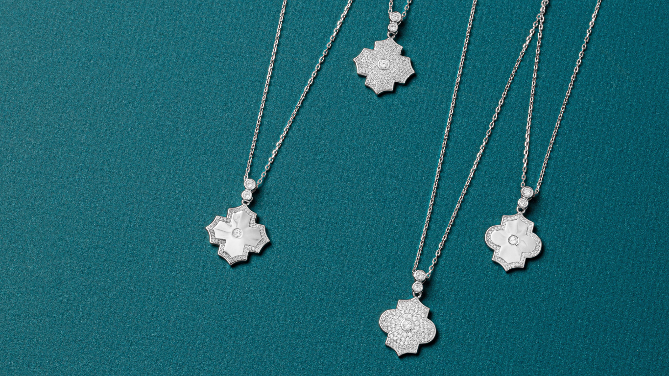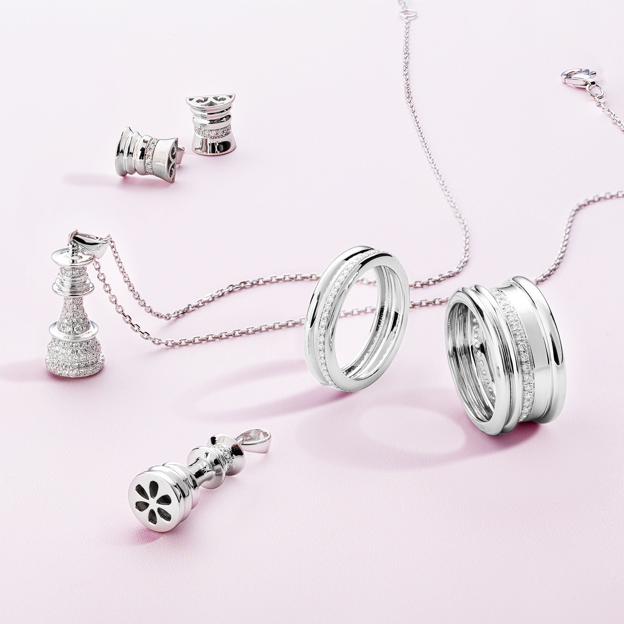 The Queen Power Chess Necklace- in White Gold with White Diamond