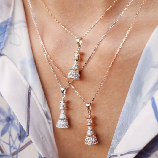Queen Chess Necklace | Large Rose Gold Full Pavé Diamond