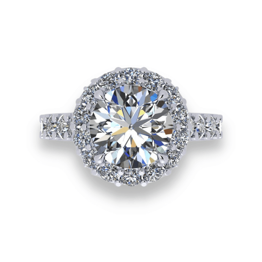 Platinum Elegance- Round Brilliant Engagement Ring with Diamond Halo