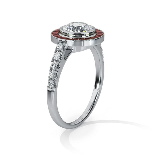 Art Deco Diamond Ring- With Ruby Halo