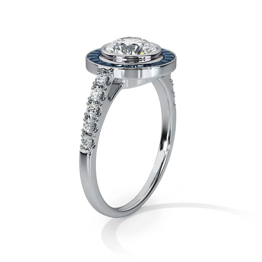 Art Deco Diamond Ring - With Sapphire Halo