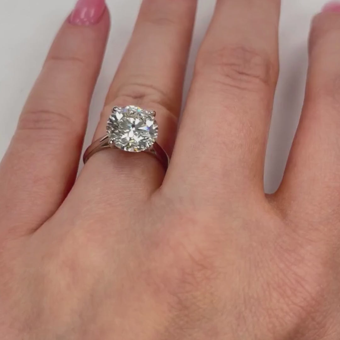 This classic brilliant cut lab grown platinum solitaire ring is a timeless piece that exudes elegance and sophistication. Expertly crafted by hand in London, this ring features a stunning round brilliant cut lab grown diamond boasting a generous 3 carat weight, set in a four-claw mount to allow the maximum amount of light to enhance the diamond's natural beauty. The platinum band complements the diamond's brilliance, making it a perfect choice for engagement rings, anniversary gifts, or any special occasion.